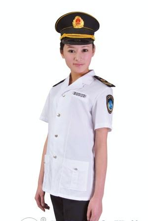 夏季著制式半袖襯衫,戴白色監(jiān)督帽,使用軟肩章,掛臂章和胸牌,襯衫的下擺放于褲外,制式長褲,女監(jiān)督員可穿制式裙子。