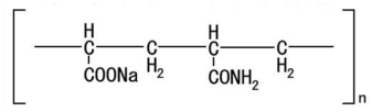 舒熱絲TM纖維是一種經(jīng)特殊工藝制成的一種丙烯酸纖維,是由丙烯酸、丙烯酸鈉和丙烯酰胺等基團所組成的功能性纖維。纖維大分子中擁有很多能抓住水分子的親水基團。其分子結(jié)構(gòu)如下: