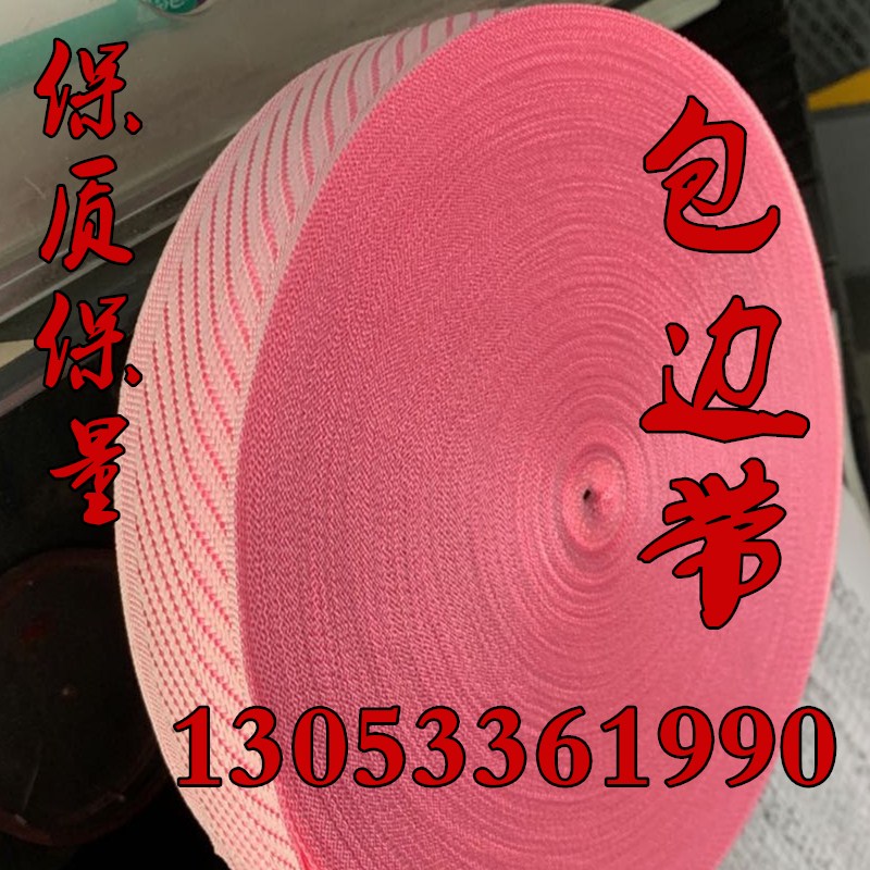 各類中服飾織帶,產(chǎn)品包括:席夢思床墊帶、地毯毛毯人字帶0.8-5CM帳篷內(nèi)包邊,包邊帶多用在皮具、箱包、睡袋、帳篷、服裝的包邊和裝飾,也廣泛運用于運動鞋扣眼、補強等功能性用途。滌綸包邊帶較柔軟,多用于比較柔軟布料的包邊。