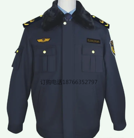 著防寒服時,穿冬季制式褲子,內著配發(fā)襯衣,襯衣下擺扎于褲內,扎制式腰帶,系制式領帶,佩戴硬肩章、臂章、硬胸徽、硬胸號。