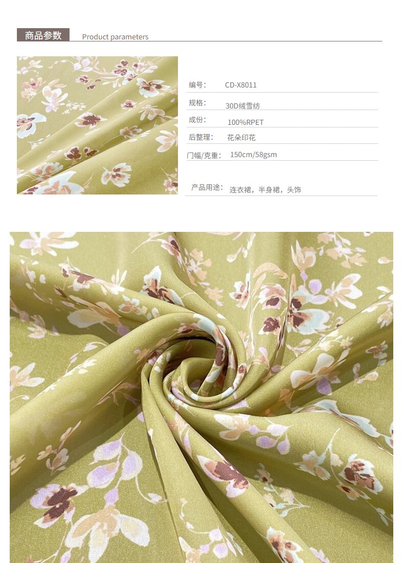 關鍵字:再生面料,絨雪紡面料,連衣裙面料,頭飾面料