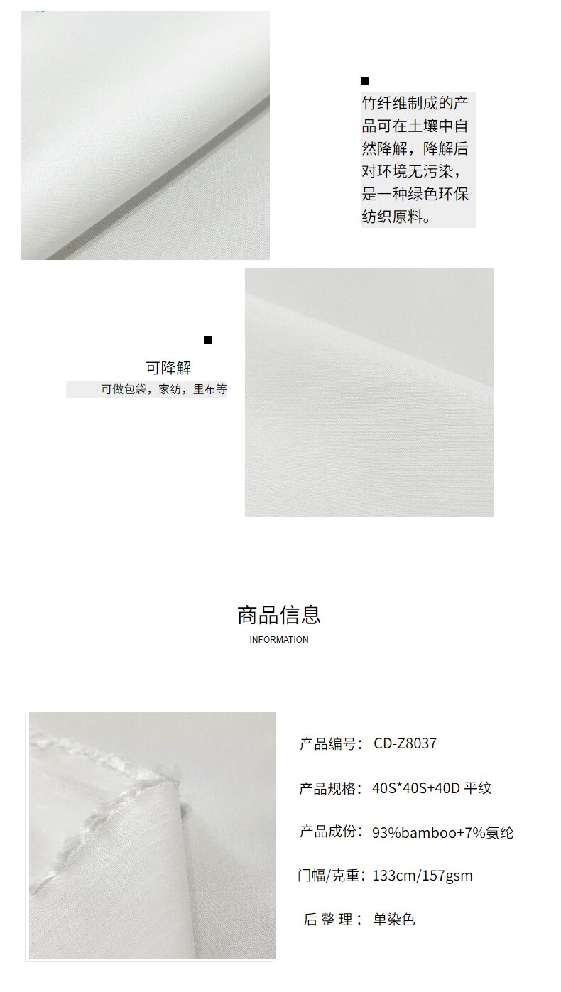 關(guān)鍵字:可降解竹纖維面料,平紋竹纖維面料,包袋面料,家紡面料