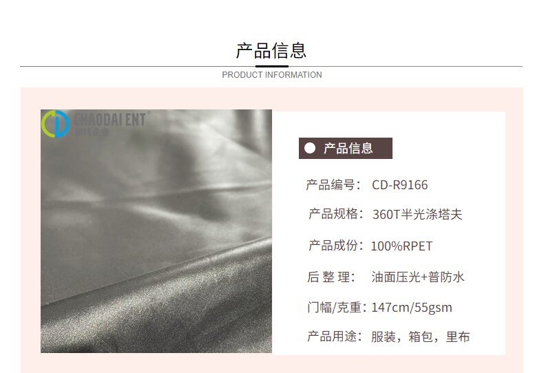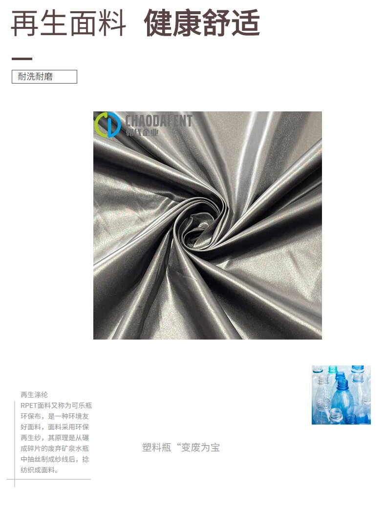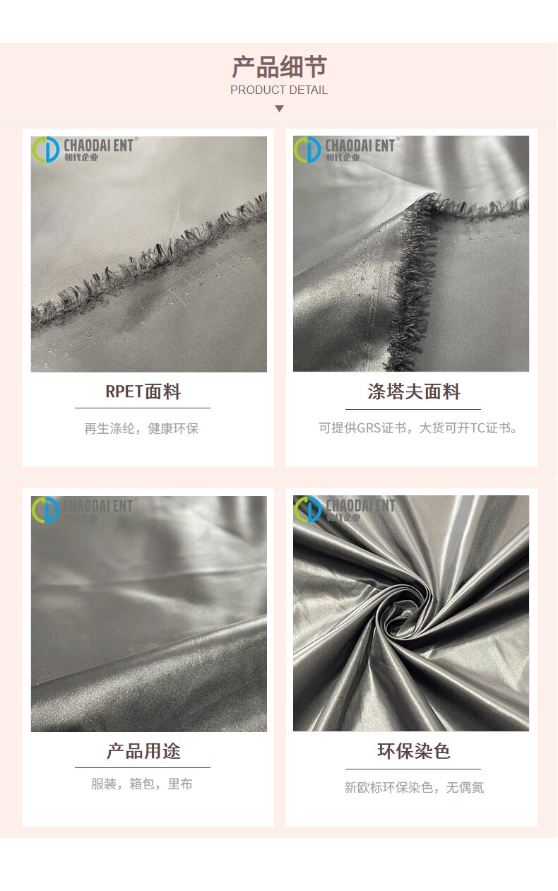 關鍵字:再生滌綸,滌塔夫面料,服裝面料