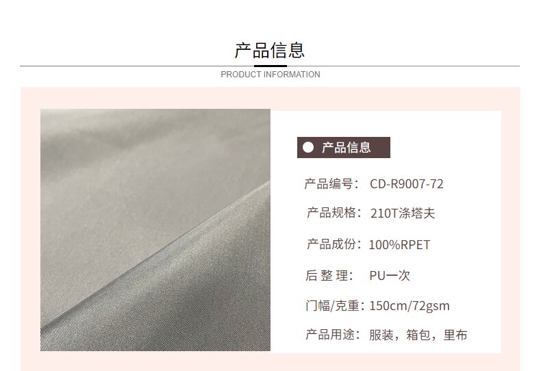 關(guān)鍵字:再生滌塔夫面料,滌塔夫面料,箱包面料,服裝面料