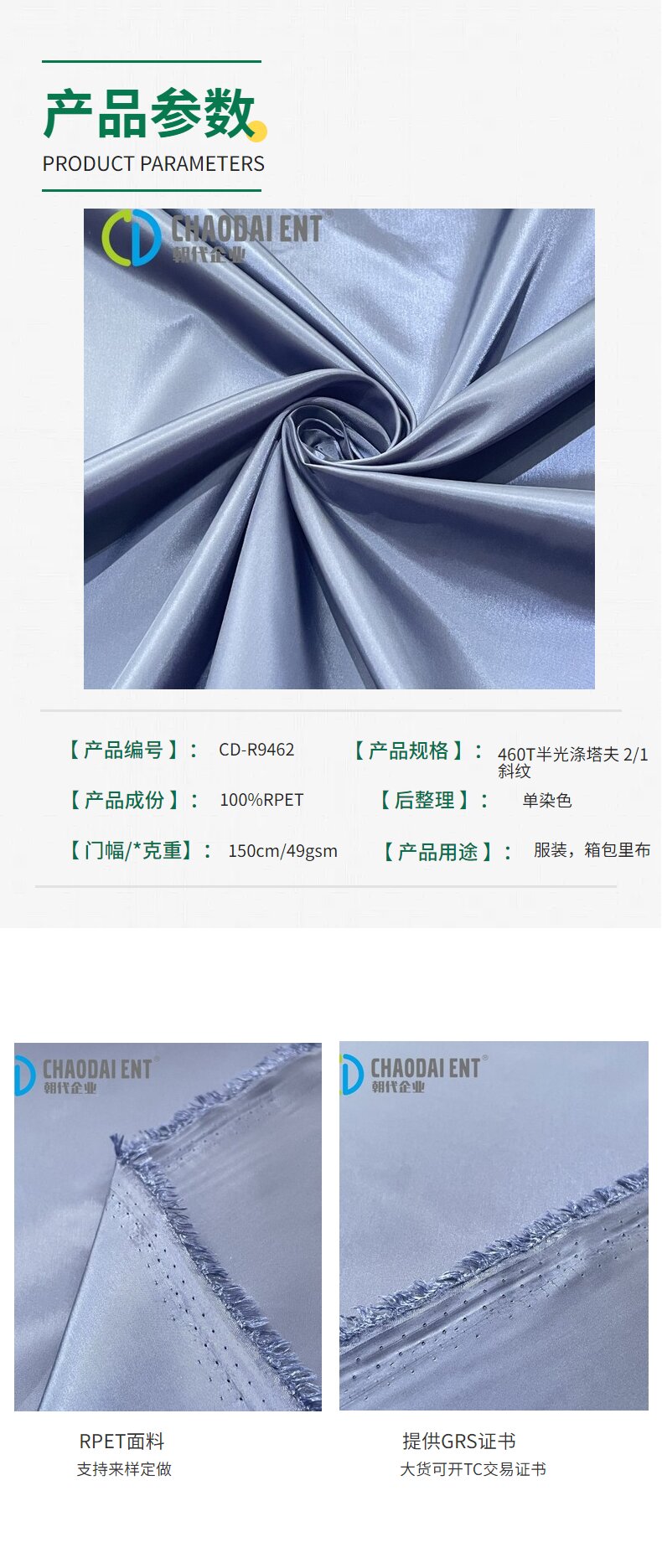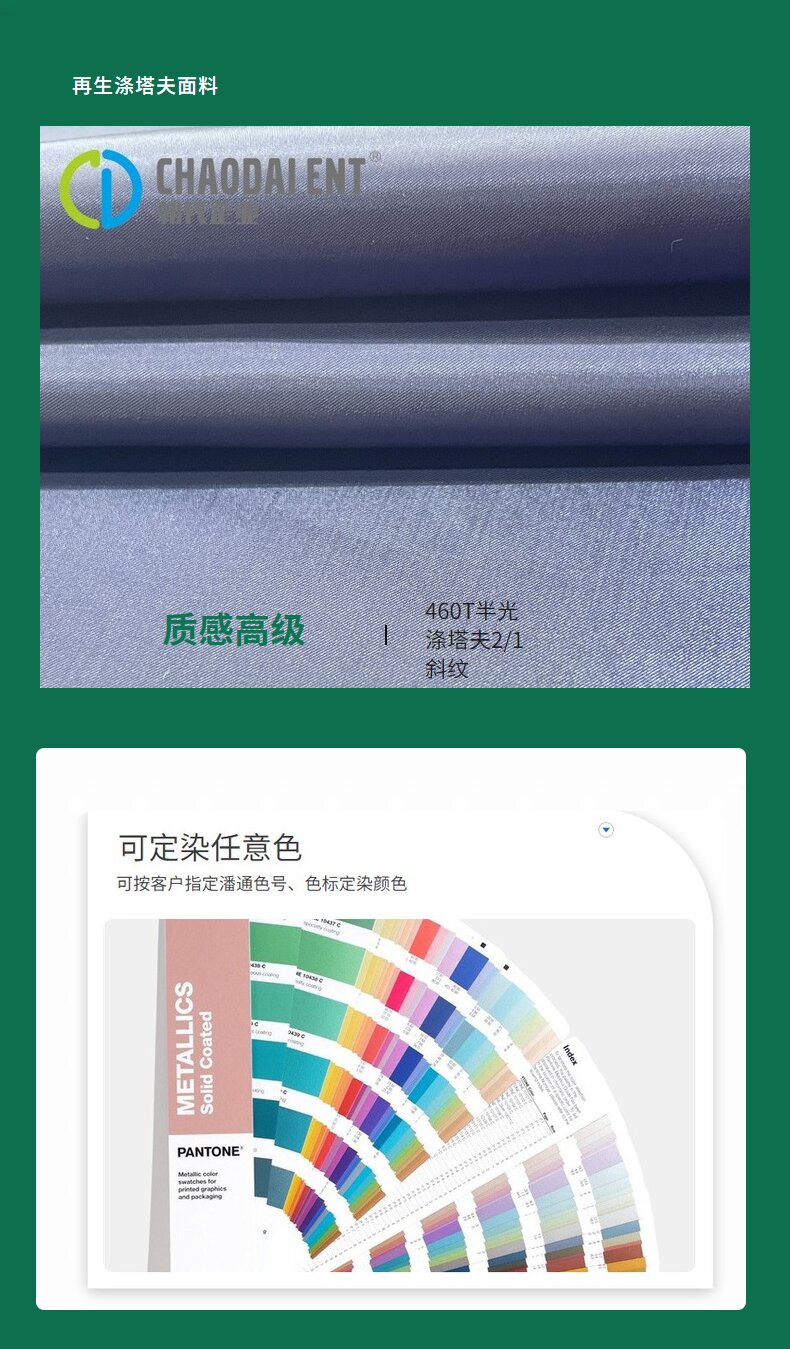 關鍵字:再生面料,半光滌塔夫面料,箱包面料,服裝面料,里布面料