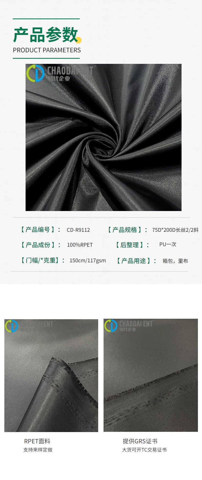 關(guān)鍵字:再生面料,牛津布面料,長絲2/2斜面料,箱包面料,里布面料