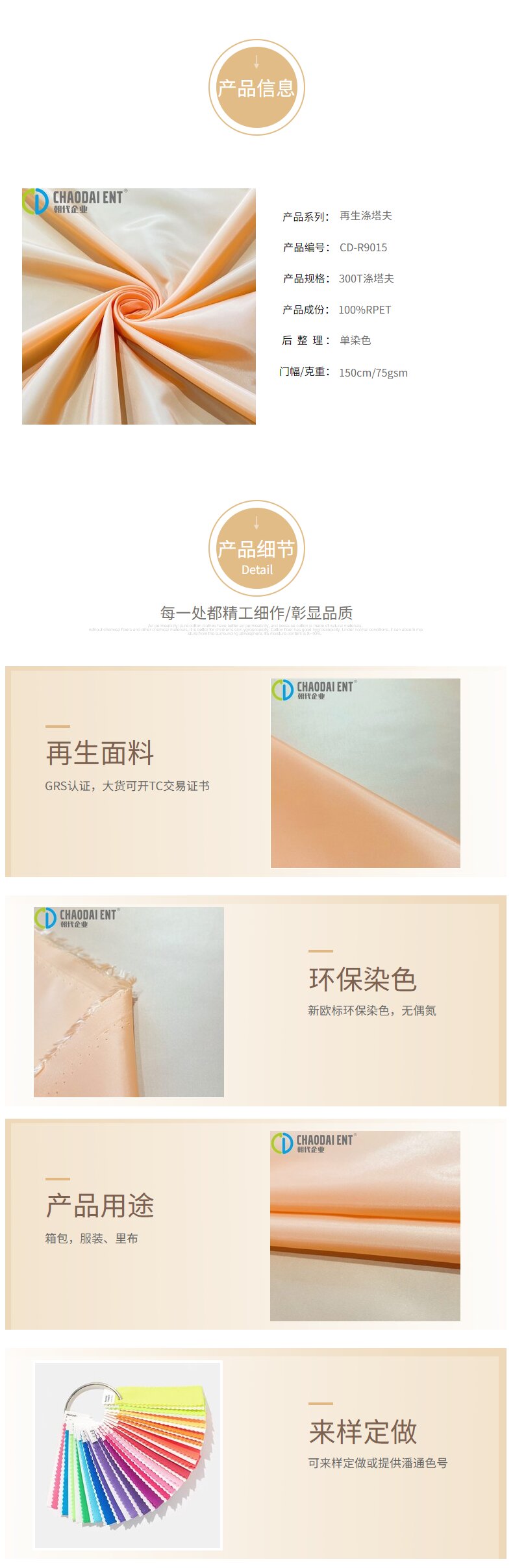關(guān)鍵字:再生滌塔夫,再生滌綸,GRS認(rèn)證面料