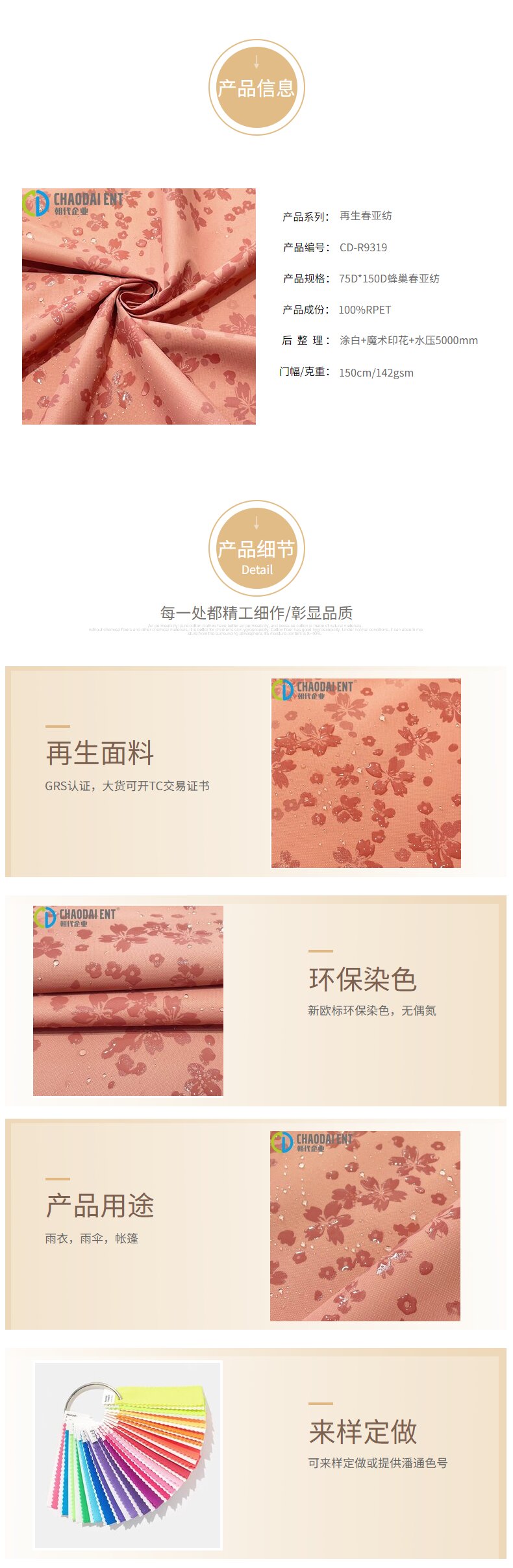 關鍵字:再生蜂巢春亞紡,再生面料,雨衣面料,雨傘面料