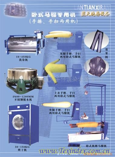 牛仔服:臥式碼騮機(jī)(單腿、雙腿)等洗滌機(jī)械