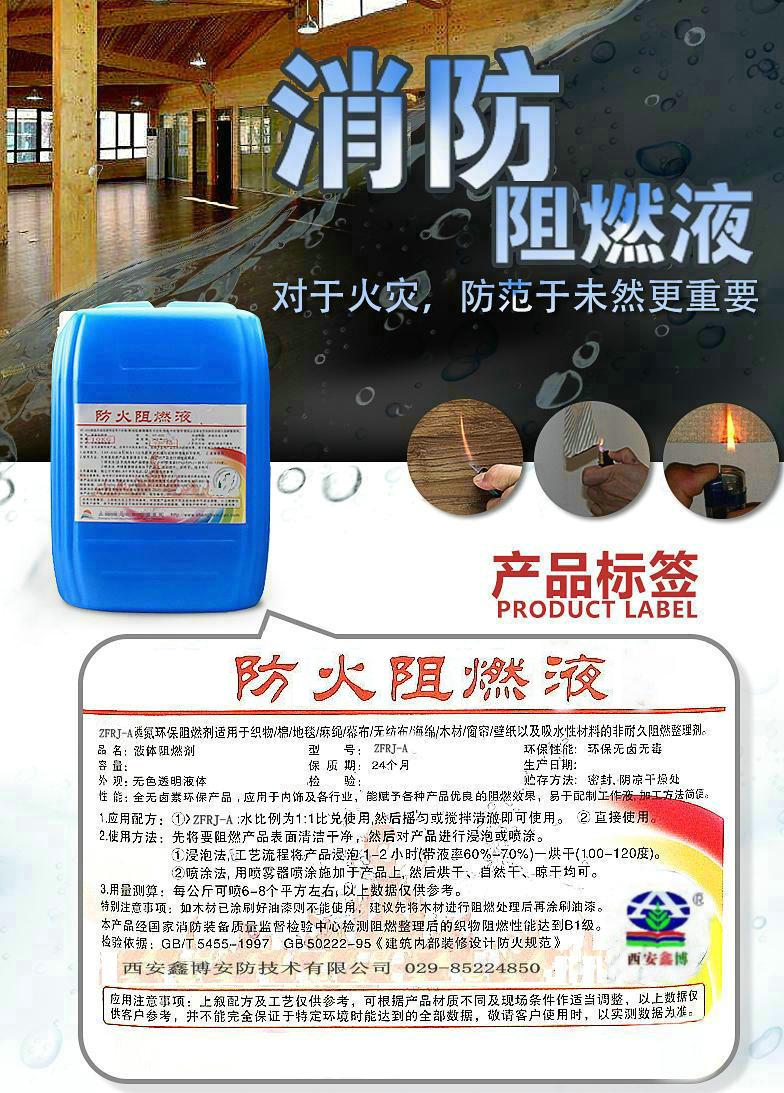西安咸陽紡織品水基型阻燃劑。凡經(jīng)處理噴涂的物件能達(dá)到防火阻隔燃,降低阻止火焰?zhèn)鞑サ男阅埽且环N非常理想的防火阻燃產(chǎn)品??梢詮V泛應(yīng)用于各類天然纖維和人工合成纖維的紡織品,如棉布、棉麻織物、毛織物、紡織物、地毯、窗簾、床單、裝飾布以及飛機(jī)、輪船、汽車內(nèi)裝飾布等,也可以用于工業(yè)用途的牛皮紙、壁紙及可吸附本產(chǎn)品的易燃物。