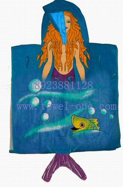 割絨純棉活性印花兒童披風(fēng)浴巾毛巾