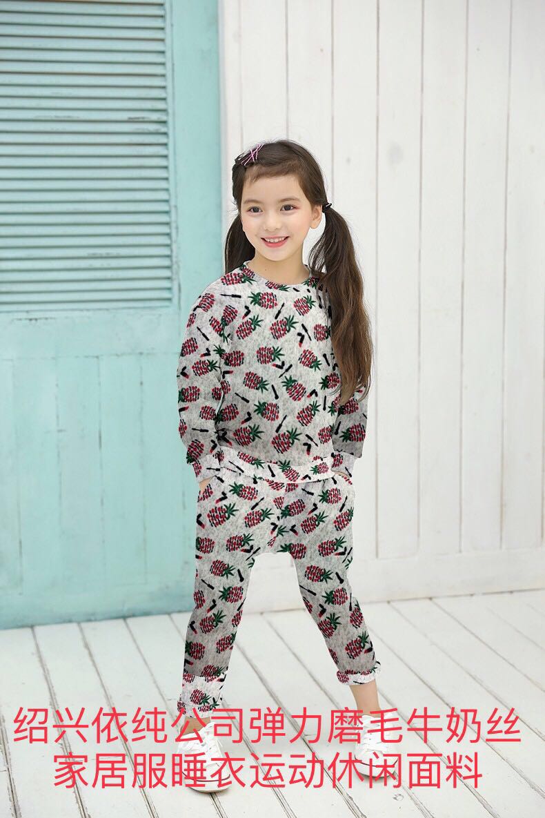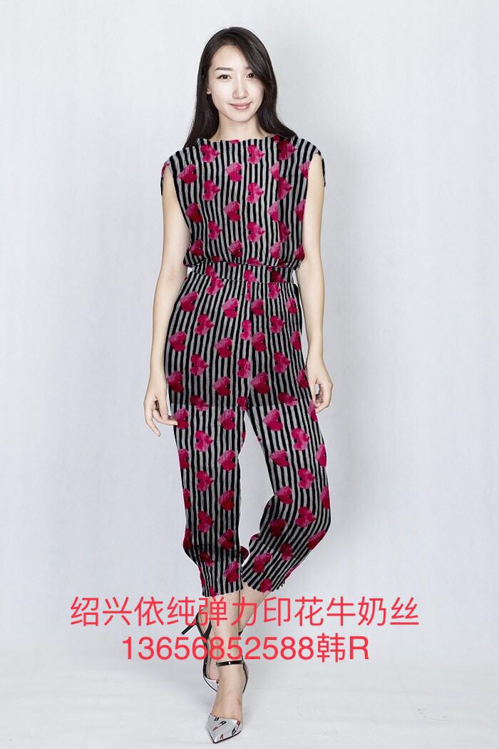 紹興依純針紡織品有限公司,專業(yè)生產(chǎn)各種規(guī)格的冰絲,拉架,四面彈,氨綸布牛奶絲,染色,分散印花和數(shù)碼印花,燙金燙花,磨毛,起絨等。是做居家服,流行時(shí)裝,運(yùn)動(dòng)服和瑜珈服理想面料。國(guó)內(nèi)北方還是做棉衣棉褲的最佳面料。本公司長(zhǎng)期和國(guó)外知名大型商超合作,H&M, 沃爾瑪?shù)雀黝惥揞^合作的服裝公司。歡迎大家一起加入我們的團(tuán)隊(duì)??梢蕴峁┎煌?guī)格,不同花型的印花。染色、扎染、燙金等工藝產(chǎn)品供您選擇。價(jià)格實(shí)惠,質(zhì)量保證。紹興依純針紡織品有限公司韓經(jīng)理熱忱歡迎國(guó)內(nèi)外新、老客戶光臨指導(dǎo)!真誠(chéng)期待您的惠顧!13656852588 0086-0575-85566067(傳真) QQ:543402201 Eail:sxzzjfml@163.com Eail:543402201@qq.com