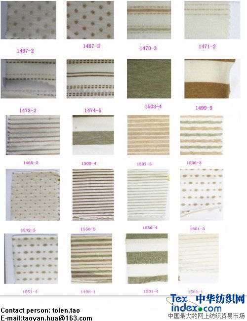 一、 彩棉梭織面料:600多款(有素色、大小提花、府綢、緞紋、條紋、平紋、斜紋、格子、燈心絨、牛仔布、泡泡紗、氨綸、牛津紡、天絲混紡、吸濕排汗…)