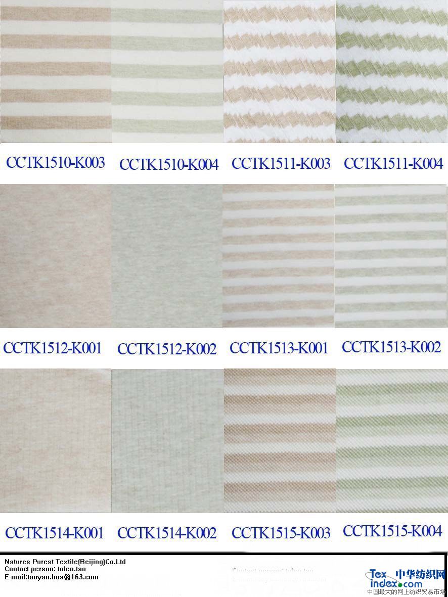 二、 彩棉針織面料:500多款(棉毛、單雙紗汗布、氨綸、網(wǎng)眼、羅紋、大小提花、天鵝絨、毛圈布、雙層布、夾絲布、華夫格、天絲混紡、莫代爾混紡…)