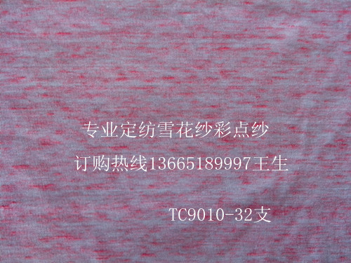產(chǎn)品介紹;不勻紗: 滌綸/棉/粘膠(TCR紗) ,通過特殊的紡紗工藝,胚紗織造后,經(jīng)單染面料或雙染即能夠出現(xiàn)花灰紗(麻灰紗)的效果,織物布面黑白相交,顏色層次清晰、色澤自然。類似風(fēng)格是普通染整工藝所不能達(dá)到的,TCR紗面料具有朦朧的立體效果,時尚高雅;呈現(xiàn)出的色彩自然均勻、表面光潔柔和,色澤深淺變幻、流光溢彩。是中高檔品牌織物的首選紗線。不勻的效果,深受客戶青睞!已被廣泛應(yīng)用于針織產(chǎn)品、內(nèi)衣系列,牛仔系等產(chǎn)品和軟裝飾產(chǎn)品。自行生產(chǎn)的特種紗線被專家認(rèn)定為紡織新品種面料開發(fā)的首選。