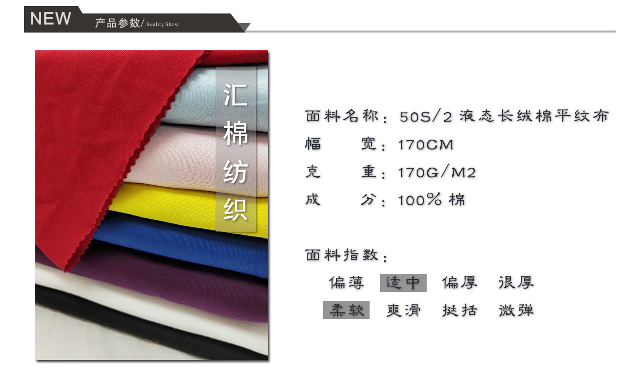 產(chǎn)品關(guān)鍵字:長絨棉布,液態(tài)棉汗布,平紋布,液態(tài)長絨棉平紋布,液態(tài)棉平紋布