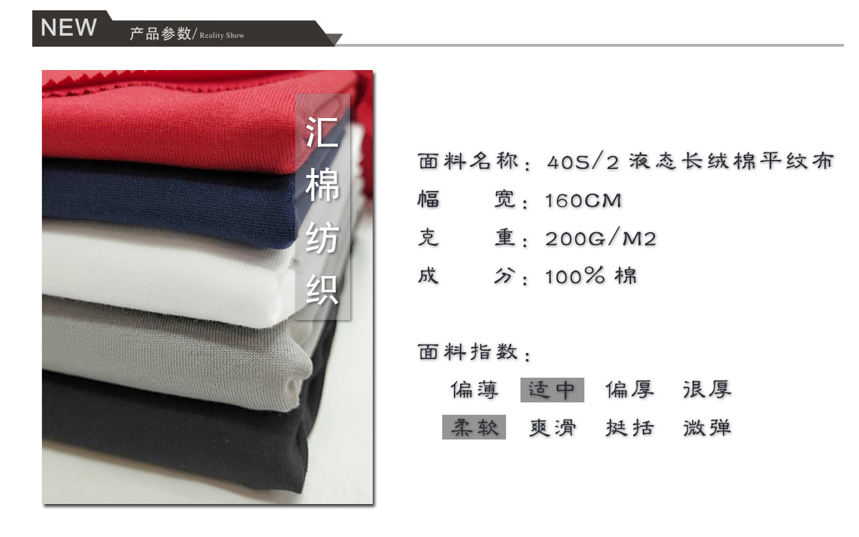 匯棉40s/2液態(tài)長(zhǎng)絨棉汗布全棉平紋布
