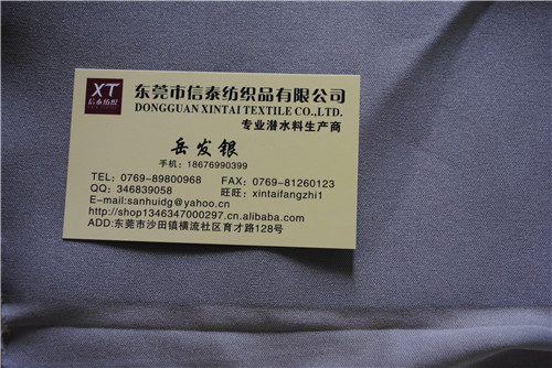 東莞市沙田信泰紡織品廠,專業(yè)生產(chǎn)潛水料,SBR,復(fù)合面料,EVA,高發(fā)泡,PUR復(fù)合, PVC復(fù)合,火焰復(fù)合,定型布,PTFE復(fù)合面料,潛水料產(chǎn)品.貼合貼膜常用布料有T布,佳績(jī)布,萊卡布,N布,仿N布,四面彈布,邊綸布,粘扣布,圈絨布,ok布,絲光布,T/C布,搖粒絨等布料,有各種厚度的潛水料以及潛水料片材,0.8mm,1mm,1.5mm,2mm,2.5mm,3mm,3.5mm,4mm,4.5mm,5mm一直到12mm等各種厚度,TPU防水膜從0,01mm到0.3mm都有。所有產(chǎn)品均通過(guò)SGS測(cè)試質(zhì)量合格。