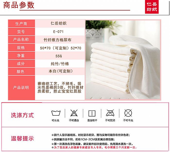 青島仁岳紡織有限公司創(chuàng)立于2012年,是一家集研發(fā)、生產(chǎn)織造、銷售于一體的綜合性現(xiàn)代化紡織企業(yè),專注生產(chǎn):竹纖維巾品系列(方巾、毛巾、浴巾、枕巾);床品系列(床品三件套、床品四件套、夏涼席等);兒童系列(童巾、嬰兒吸汗巾、圍嘴、兒童蓋毯、尿布、隔尿墊等);巾被系列(印花毛巾被、經(jīng)編毛巾被、夏涼被、透氣蓋毯)等產(chǎn)品,公司擁有平織機(jī)20余臺,劍桿提花機(jī)20臺,并常年提供高端產(chǎn)品專屬定制、印花,刺繡、OEM等專業(yè)制造加工服務(wù)。 公司注冊在美麗的海濱城市---山東省青島市,擁有專業(yè)研發(fā)團(tuán)隊和專業(yè)營銷人士進(jìn)行市場戰(zhàn)略規(guī)劃。一流的產(chǎn)品設(shè)備、完整科學(xué)的質(zhì)量管理體系和服務(wù)體系,現(xiàn)產(chǎn)品已經(jīng)覆蓋全國各大城市,產(chǎn)品質(zhì)量達(dá)到國內(nèi)領(lǐng)先水平,并遠(yuǎn)銷海外市場,深受客戶好評! 公司自成立以來,秉承“質(zhì)量為本、誠信第一”的經(jīng)營理念,不斷提高產(chǎn)品內(nèi)在質(zhì)量和對藝術(shù)的完美追求,將實用性與流行性充分協(xié)調(diào)。不斷開拓進(jìn)取,務(wù)實創(chuàng)新,全心全力服務(wù)于廣大客戶,極力拓展產(chǎn)品的應(yīng)用空間是仁岳家紡孜孜以求的動力。