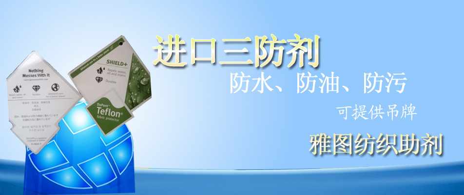 蘇州雅圖紡織助劑有限公司 經(jīng)銷(xiāo)批發(fā)的杜邦Teflon三防劑、亨斯邁助劑、3M紡織助劑、科萊恩紡織助劑、魯?shù)婪蚣徔椫鷦?、拓納紡織助劑、大和紡織助劑、旭硝子防水防油劑、Nanotex三防劑、大金防水防油劑、吸濕排汗劑、防霉抗菌劑、抗紫外線防UV劑、防污易去污劑、吸濕發(fā)熱劑暢銷(xiāo)消費(fèi)者市場(chǎng),在消費(fèi)者當(dāng)中享有較高的地位,公司與多家零售商和代理商建立了長(zhǎng)期穩(wěn)定的合作關(guān)系。蘇州雅圖紡織助劑有限公司經(jīng)銷(xiāo)的杜邦Teflon三防劑、亨斯邁助劑、3M紡織助劑、科萊恩紡織助劑、魯?shù)婪蚣徔椫鷦?、拓納紡織助劑、大和紡織助劑、旭硝子防水防油劑、Nanotex三防劑、大金防水防油劑、吸濕排汗劑、防霉抗菌劑、抗紫外線防UV劑、防污易去污劑、吸濕發(fā)熱劑品種齊全、價(jià)格合理。蘇州雅圖紡織助劑有限公司實(shí)力雄厚,重信用、守合同、保證產(chǎn)品質(zhì)量,以多品種經(jīng)營(yíng)特色和薄利多銷(xiāo)的原則,贏得了廣大客戶(hù)的信任。