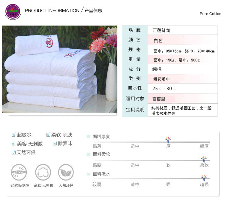 3.毛巾直接下單的均為不含任何LOGO的常規(guī)產(chǎn)品(默認(rèn)發(fā)純白色,其他顏色毛巾需要定做)為不影響我們二次銷售,可直接購(gòu)買的。