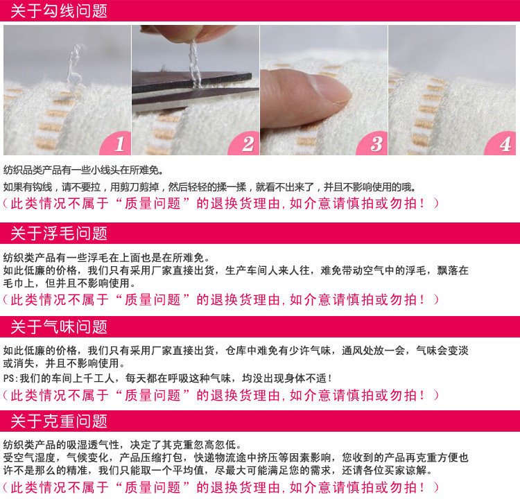 (1)毛巾廠家,三年內(nèi)無任何質(zhì)量問題,沒有”好”評都是”很好”