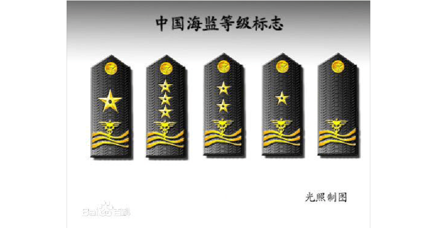 五類肩章:黑色底板上配海監(jiān)肩徽、肩扣,主要配發(fā)各級(jí)其他海監(jiān)人員、海監(jiān)船員