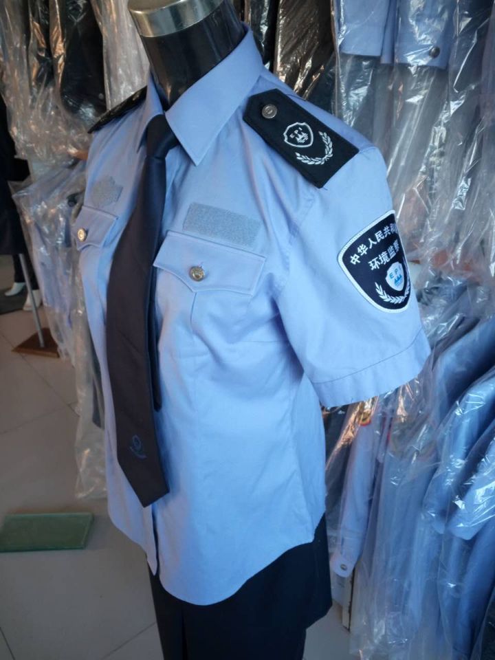 產(chǎn)品介紹:環(huán)境執(zhí)法人員的制服顏色、樣式和公安制服類似,但肩章、臂章都印有“環(huán)境監(jiān)察”(英文縮寫EPI)的字樣,還有彩色的青山綠水標志,并佩有標明執(zhí)法人員編號的胸牌。