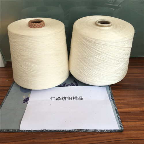 環(huán)錠紡滌粘紗:采用儀征大化纖和唐山三友粘膠混紡而成。 自動絡(luò)筒打接,紗線條干均勻,無接頭強(qiáng)度高,紗疵少。適合用于高速噴氣織機(jī),噴水織機(jī),針織大圓機(jī);用于針織布,機(jī)織布,用于針織面料,裝上用品等。紗支:10支16支21支32支40支等