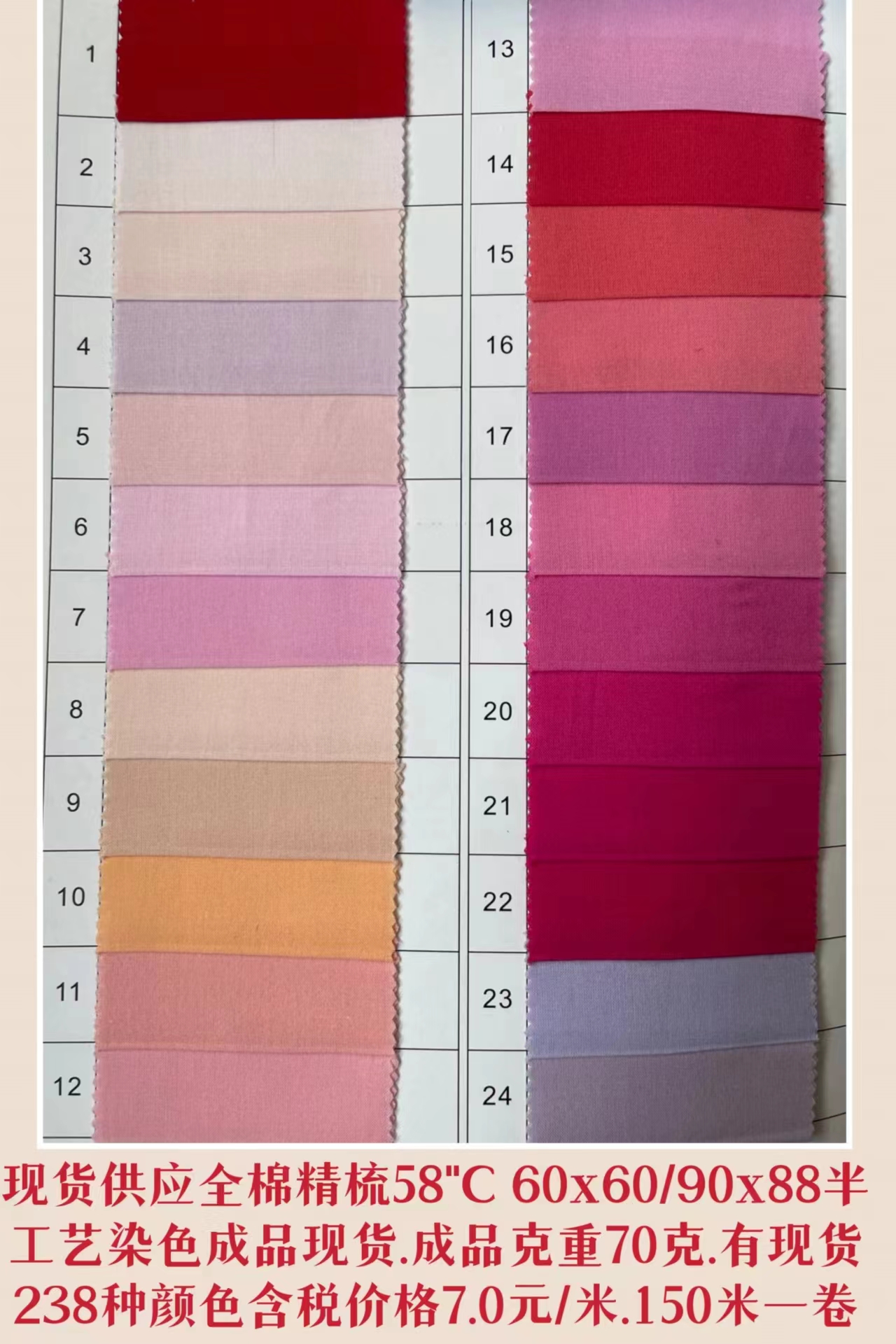 倉庫常年現(xiàn)貨供應(yīng)60"JC60x60/90x88染色成品布有238種顏色細(xì)布,