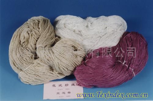 二、圓頭機(jī)主要產(chǎn)品:羽毛紗、亮片紗(玻璃紗)、編織紗及空心帶等不同支數(shù)成份的花式紗線。