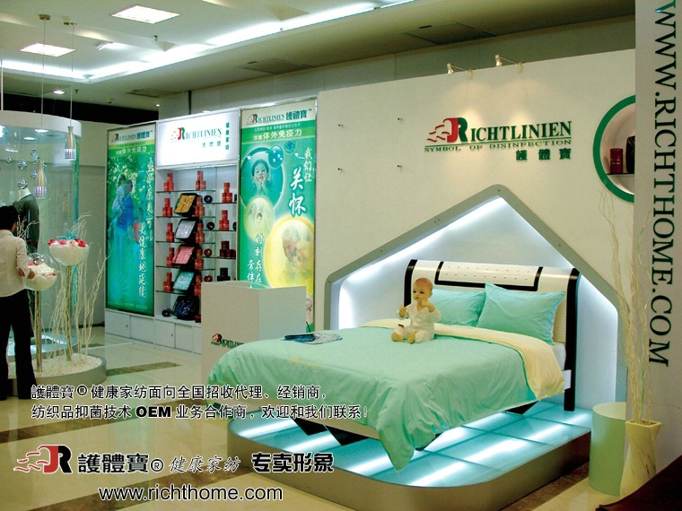 公司紡織品部秉承公司追求健康、環(huán)保產(chǎn)品品質(zhì)的理念,自公司成立以來,一直致力于“為廣大消費(fèi)者營造高品質(zhì)的健康家居環(huán)境”——健康家紡的研究。公司和德國合作開發(fā)的“RICHTLINIEN(瑞特能)纖維養(yǎng)生技術(shù)”,是現(xiàn)代預(yù)防醫(yī)學(xué)最新成果與高分子科技的完美結(jié)合,它涉及到醫(yī)學(xué)、生物工程、高分子技術(shù)等多學(xué)科、多領(lǐng)域的最新科研成果,它是人類健康史上新的里程碑!其技術(shù)功效已通過國際權(quán)威機(jī)構(gòu)“Intertek Labtest”抑菌鑒定。
