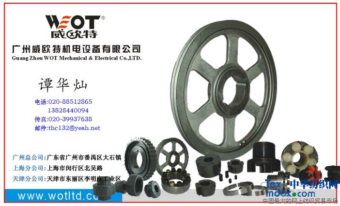 廣州威歐特機(jī)電設(shè)備有限公司是一家中美合資企業(yè),是目前國內(nèi)傳動件出口量最大的企業(yè),主要生的產(chǎn)品有:歐式皮帶輪、美式皮帶輪、聯(lián)軸器、同步帶輪、等及各種復(fù)雜的傳動產(chǎn)品,產(chǎn)品主要應(yīng)用的行業(yè)有:中央空調(diào)行業(yè)、空氣壓縮機(jī)行業(yè)、汽車行業(yè)、紡織機(jī)械、建筑機(jī)械、塑料機(jī)械、煤礦機(jī)械、鋁型材機(jī)械、染整機(jī)械、木工機(jī)械、洗滌設(shè)備等各類機(jī)械設(shè)備