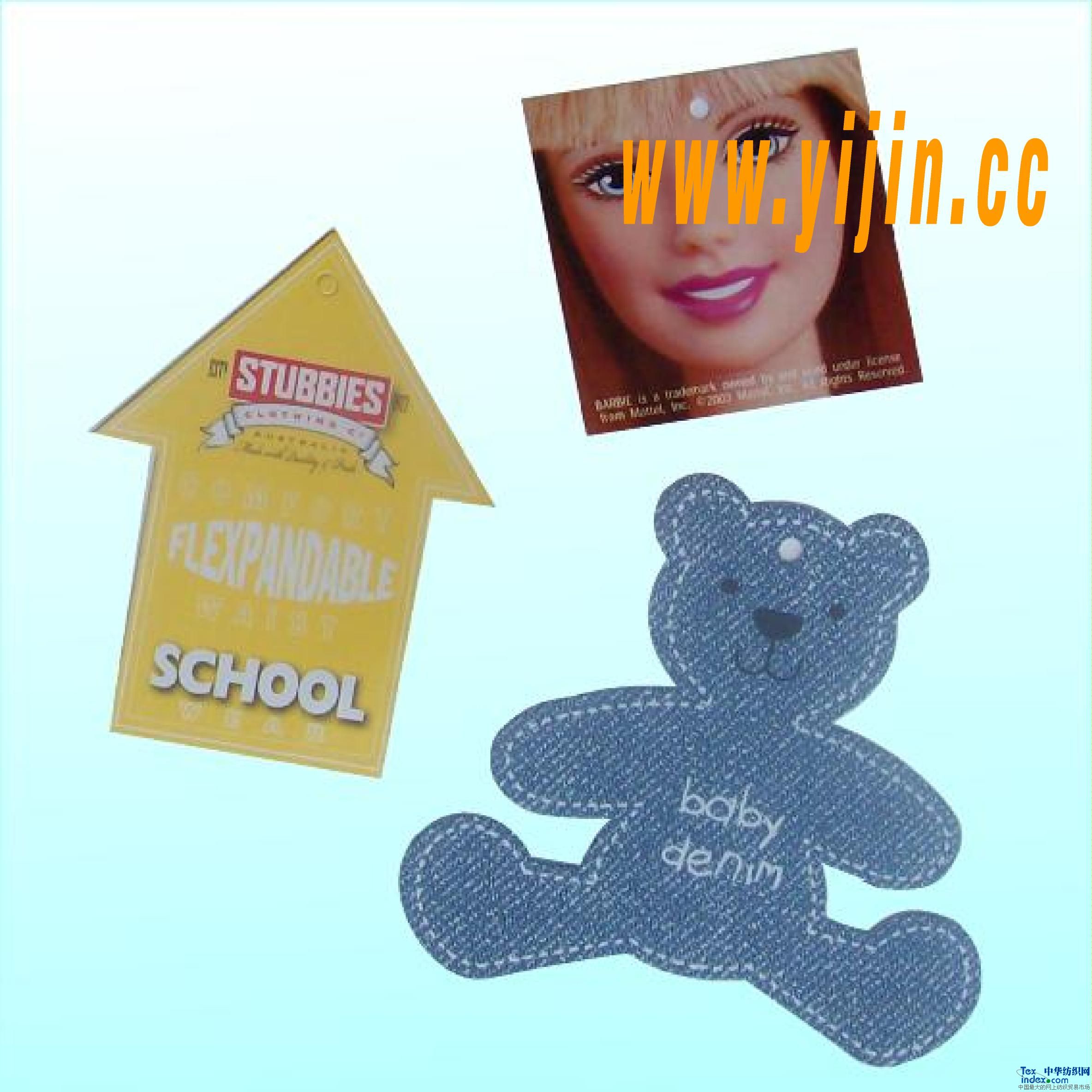 我公司為專業(yè)生產(chǎn)服裝、鞋帽、箱包、床上用品等所需商標(biāo):織嘜、印標(biāo)、織帶、吊牌、吊粒、皮牌、拉頭、魔術(shù)貼搭扣、羽絨充氣標(biāo)及特種工藝商標(biāo)等。