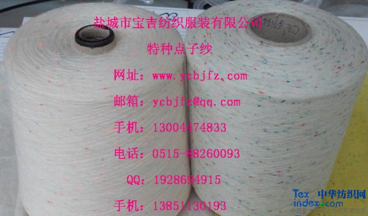 我單位除生產(chǎn)各種普通棉紗外,還生產(chǎn)各種特殊花式紗線:彩色點子紗,點子紗,AB紗線,AB竹節(jié)紗,本白竹節(jié)紗,色紡竹節(jié)紗,色紡紗,段染紗,段彩紗和各種麻灰色紡紗線的專業(yè)企業(yè)。我司的彩點和AB產(chǎn)品詳細(xì)說明如下: