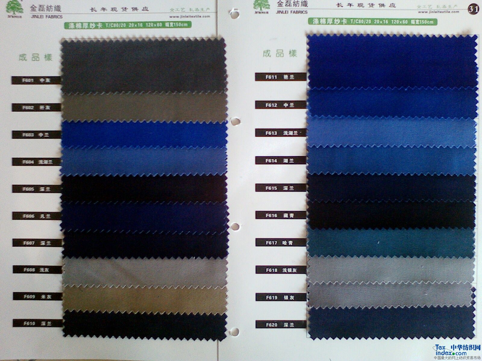 F601-F634滌棉厚紗卡 T/C80/20 150CM 20*16 120*60、